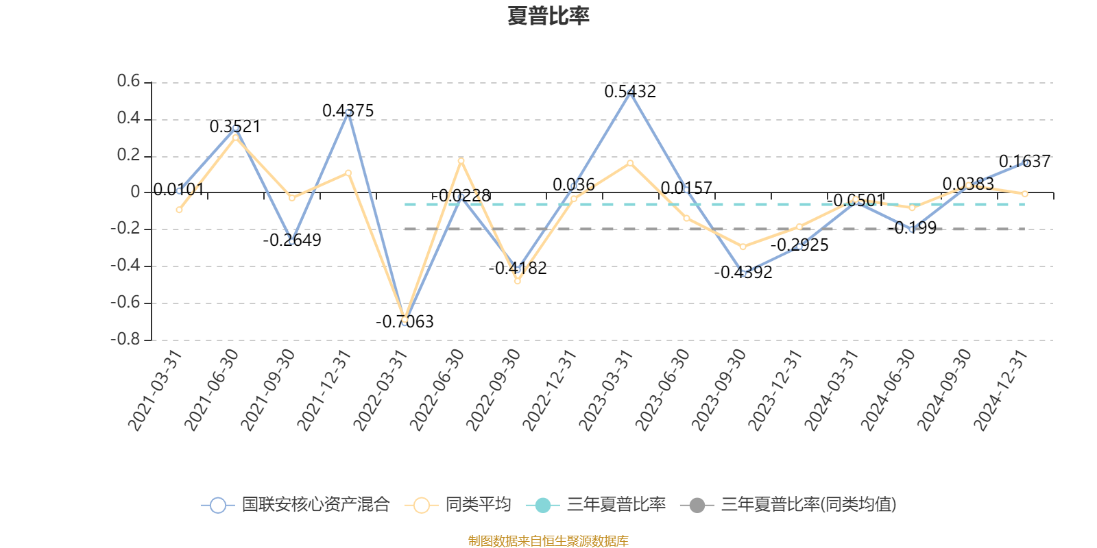 截至12月31日,基金近三年夏普比率为-0.0635,位于同类可比基金134/437。