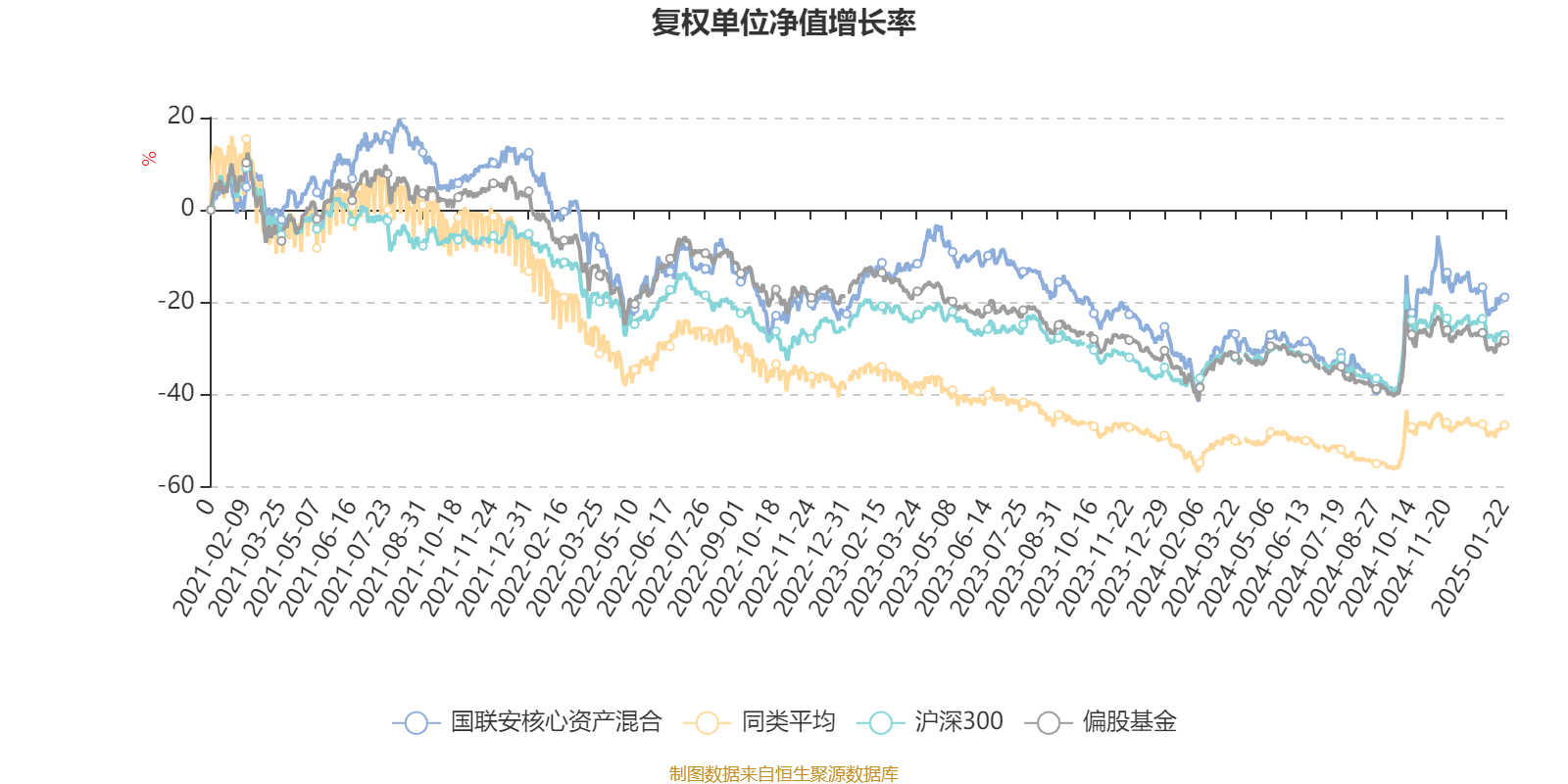 截至1月22日,国联安核心资产混合近三个月复权单位净值增长率为-1.54%,位于同类可比基金330/646;近半年复权单位净值增长率为17.64%,位于同类可比基金132/645;近一年复权单位净值增长率为23.77%,位于同类可比基金157/633;近三年复权单位净值增长率为-21.47%,位于同类可比基金168/447。